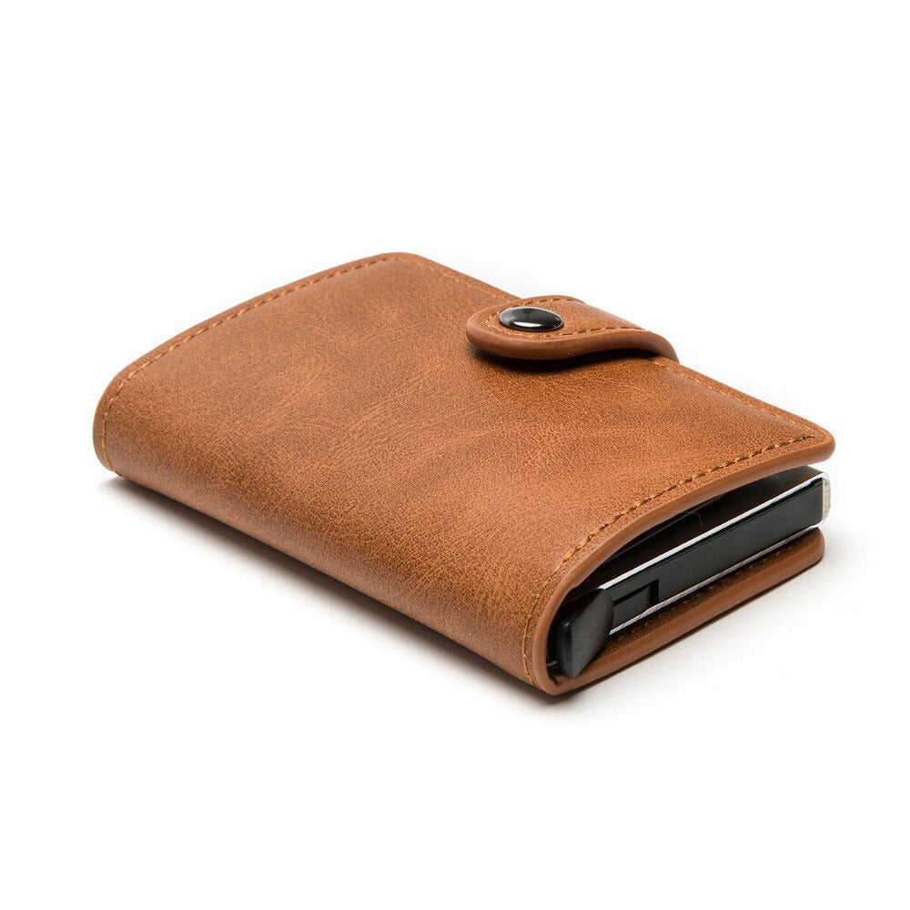 BILLETERA PORTA TARJETAS Y BILLETES. MATERIAL DE ALUMINIO Y CUERO P.U., COLORES VARIADOS. ELEGANTE, NUEVO ESTILO 2023