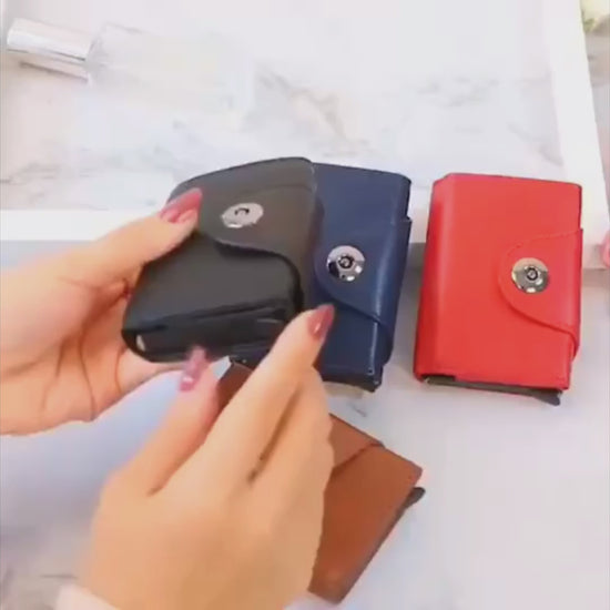 BILLETERA TARJETERA DAMA DE CUERO PU, CON PROTECIÓN RFID, HEBILLA MAGNETICA